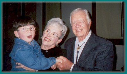 T.J, held by his Grandmother, Martha Arrington shakes hands with President Jimmy Carter.