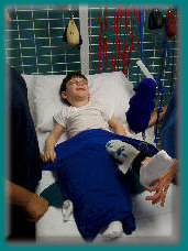 This type of therapy is currently only available in Michigan so TJ's Medicaid therefore does not cover it. The therapy sessions last for 4 hours per day for a minimum of two weeks. The therapy costs $2,500 per week plus room and board. This means that we need to raise approximately $7,000 to pay for the minimum two-week session. Melissa and I are so anxious to get TJ walking that we have accepted an appointment time that will put us in Michigan for Christmas and New Years. Otherwise we would have to wait a very long time for an opening at a more "sensible" time.